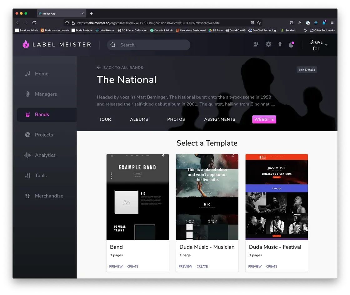 Duda provides API endpoints to retrieve data on the templates in a particular account, whether they be built-in Duda templates or custom team templates. The endpoint response will include all the properties needed to render a template chooser, including screenshots, preview links and the template name.